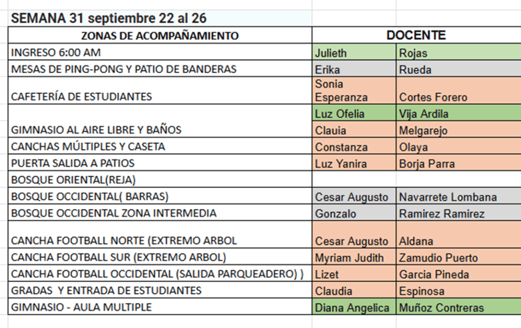En atención a la manifestación de un padre de familia que no está de acuerdo con que el nombre de su hijo sea publicado, invitamos a los padres o acudientes que compartan esta posición a acercarse al colegio el día 22 de septiembre en horario de 7:00 a 9:00 a.m. a las coordinaciones correspondientes. Los padres de los estudiantes cuyos nombres no sean publicados deberán asistir personalmente, dentro del horario de atención de cada docente, para recibir información detallada sobre el avance académico en el periodo.